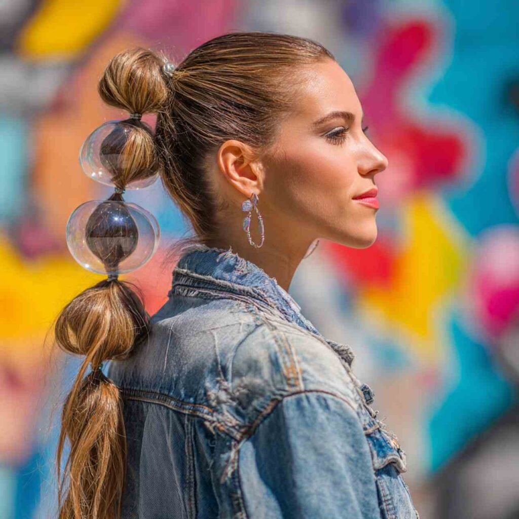 The bubble ponytail transforms a basic style into something playful and dimensional. By segmenting the ponytail into “bubbles,” this look creates visual interest and works surprisingly well across age groups.