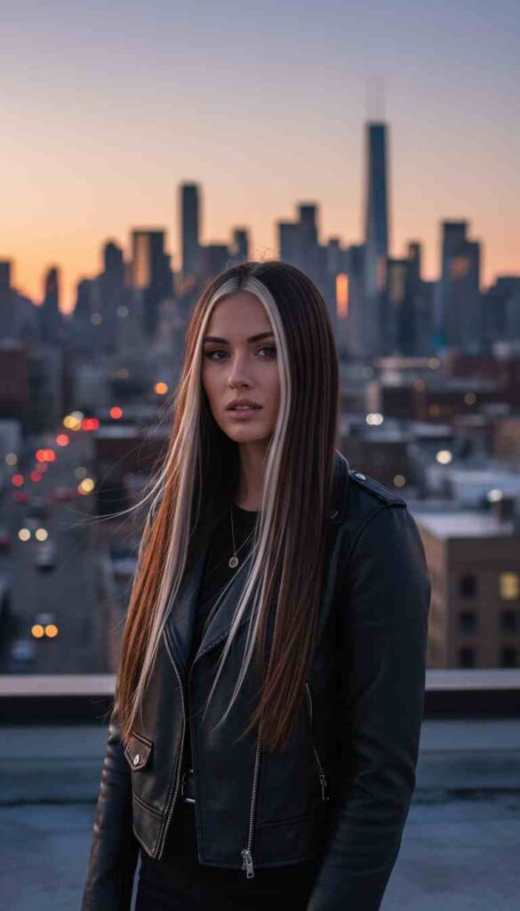 Bright platinum money pieces painted on a blonde base create maximum face-framing brightness. The balayage is bold at the front while maintaining softer dimension throughout. This technique adds drama while remaining cohesive.