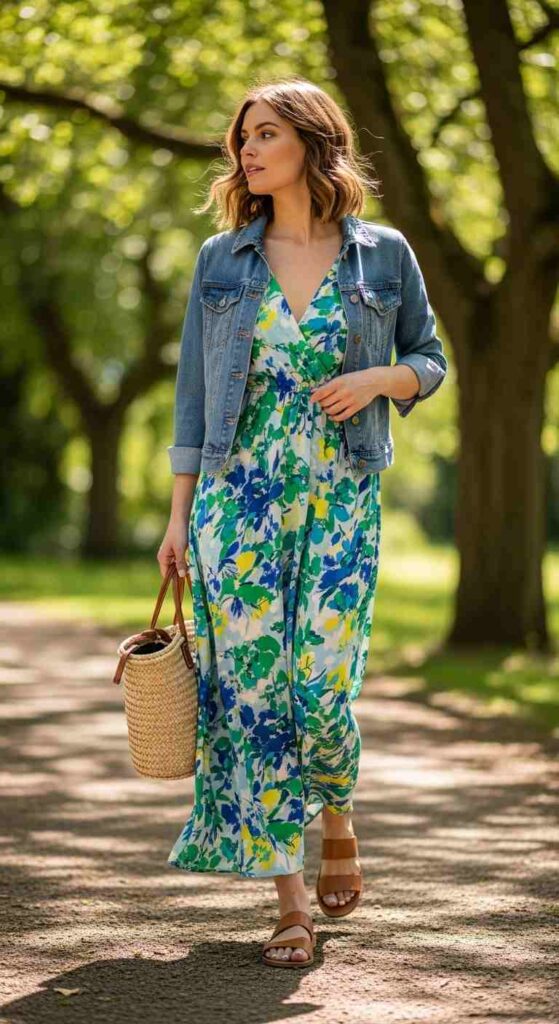2. Midi Dress and Denim Jacket