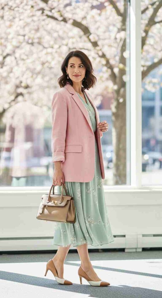Pastels remain beautiful—spring’s characteristic soft colors continue working through transition, though they can intensify slightly toward their summer variations. Soft pink becomes slightly more saturated, pale blue deepens marginally, maintaining spring character while acknowledging seasonal progression.