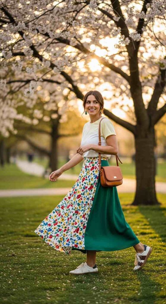 Bright colors become genuinely appropriate—as nature’s own palette intensifies with full bloom, fashion can mirror this with bolder corals, vivid yellows, bright greens, and saturated blues that capture late spring and early summer’s energy.
