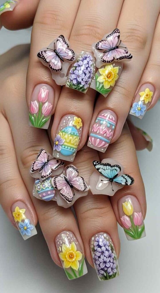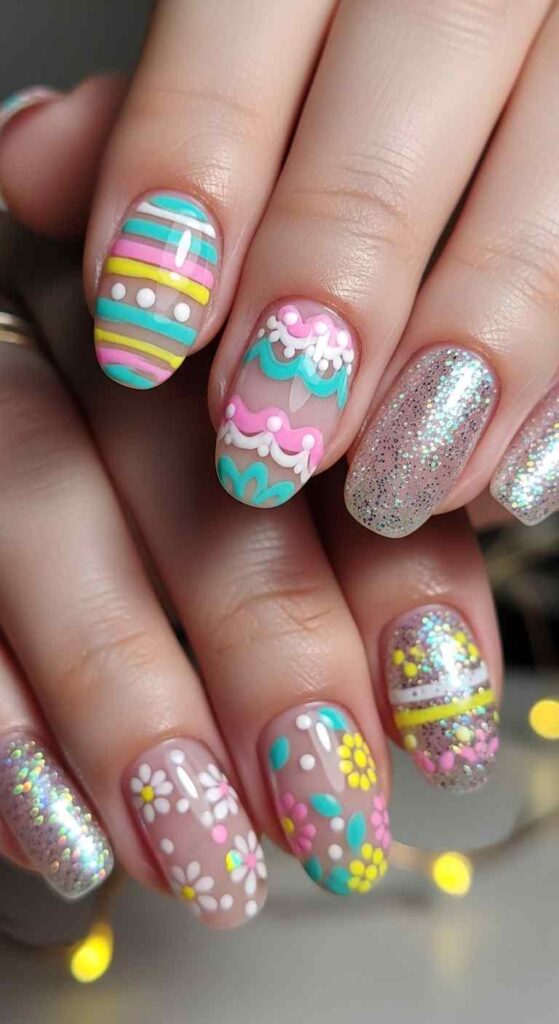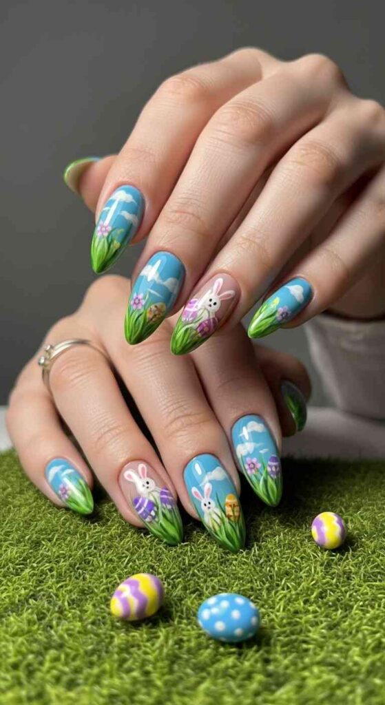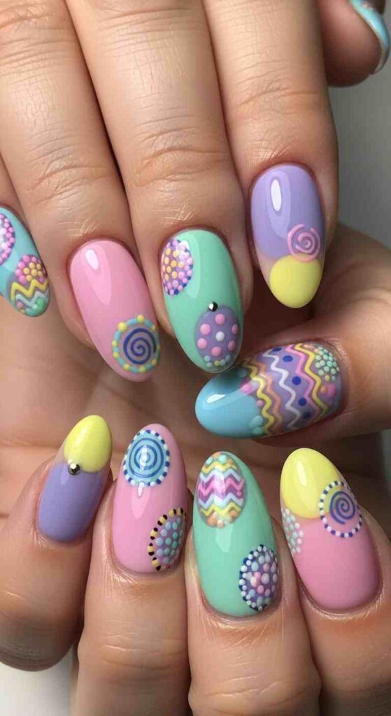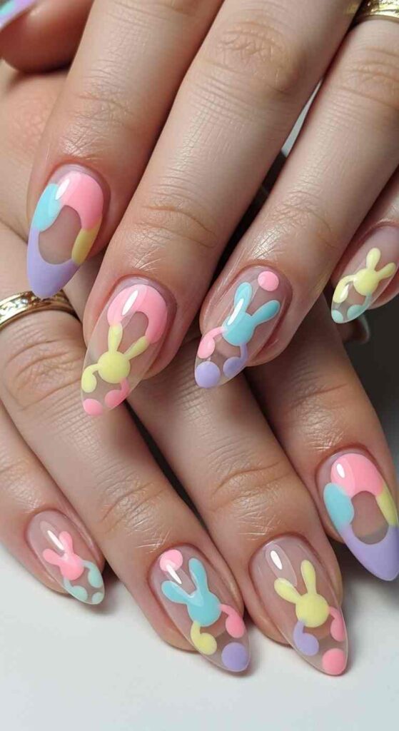 Easter nail art can range from literal depictions of holiday symbols through abstract artistic interpretations inspired by Easter themes.