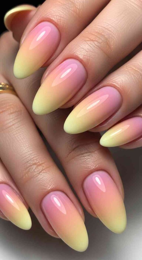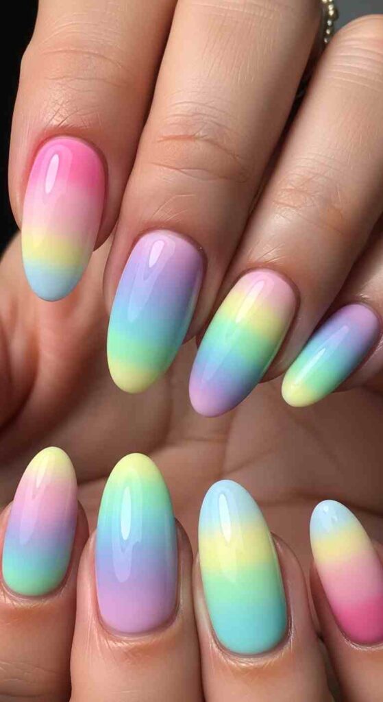 Ombre blending full Easter spectrum creates rainbow egg effect.