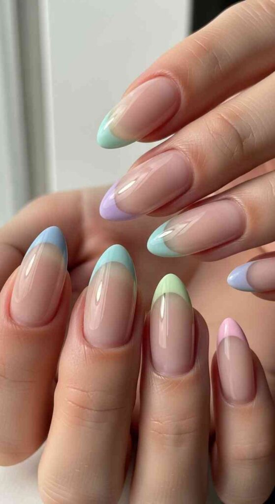 French tips in gradient Easter colors creates modern classic.