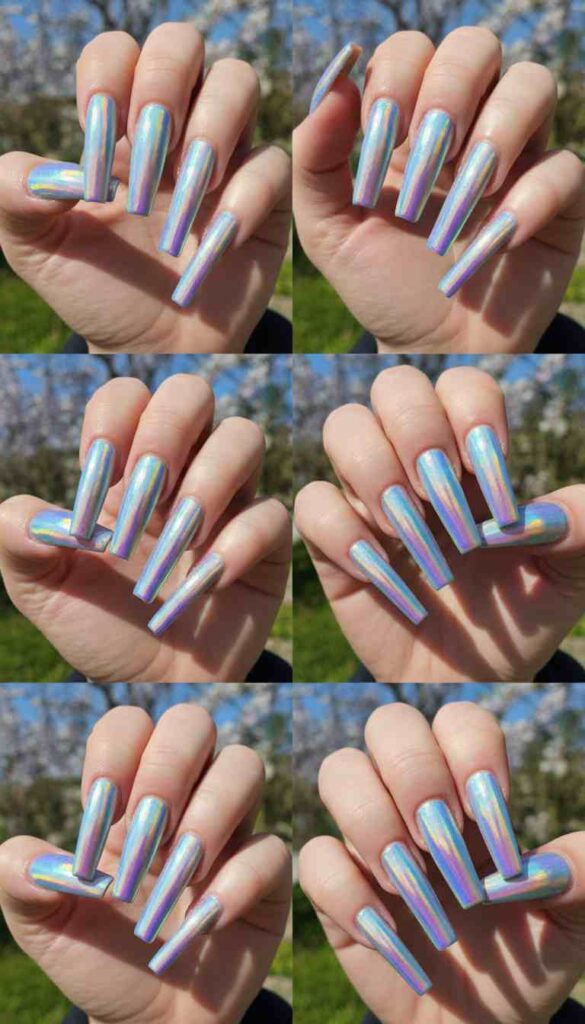 Rainbow holographic finish creates magical shifting vibrant effect.