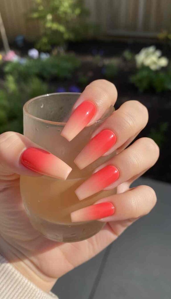 Gradient from bright coral to peachy cream creates warm vibrant dimension.