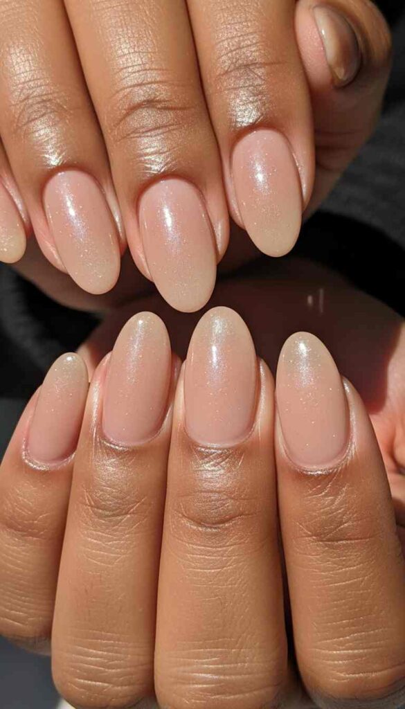 Natural nude with subtle shimmer creates dimensional minimal elegance.