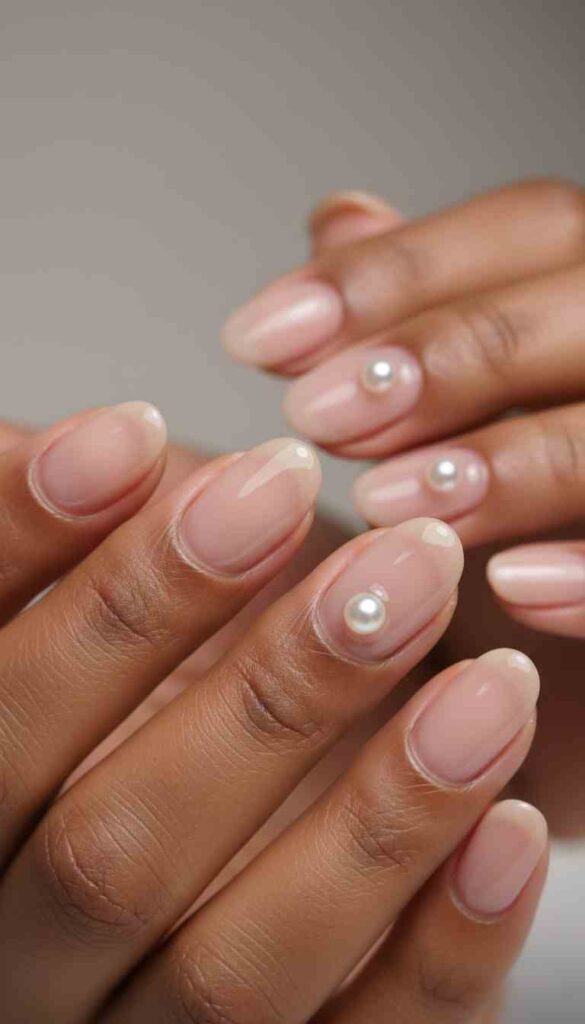 Clean nails with one tiny pearl creates delicate minimal luxury.