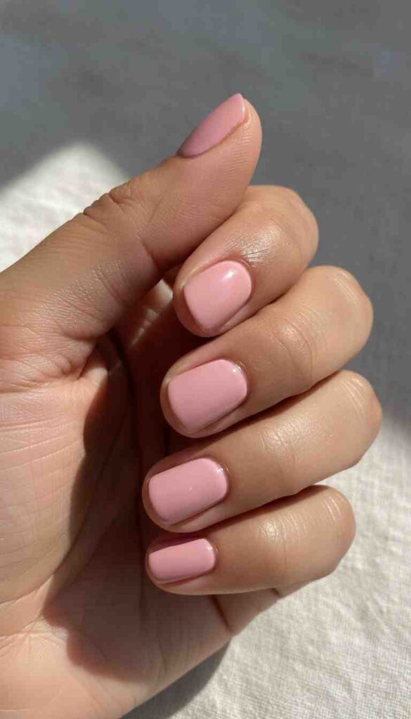 Single soft pink shade creates gentle minimal simplicity.