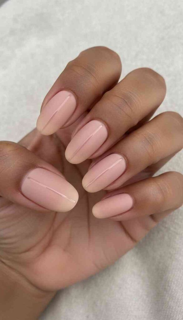 Matte nude with glossy tips creates textured minimal contrast.