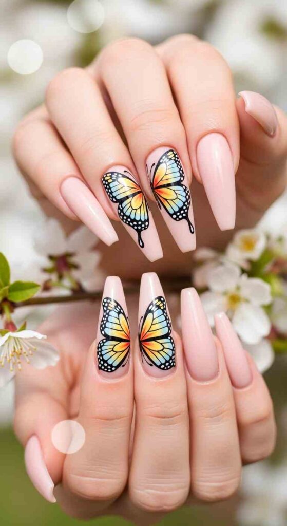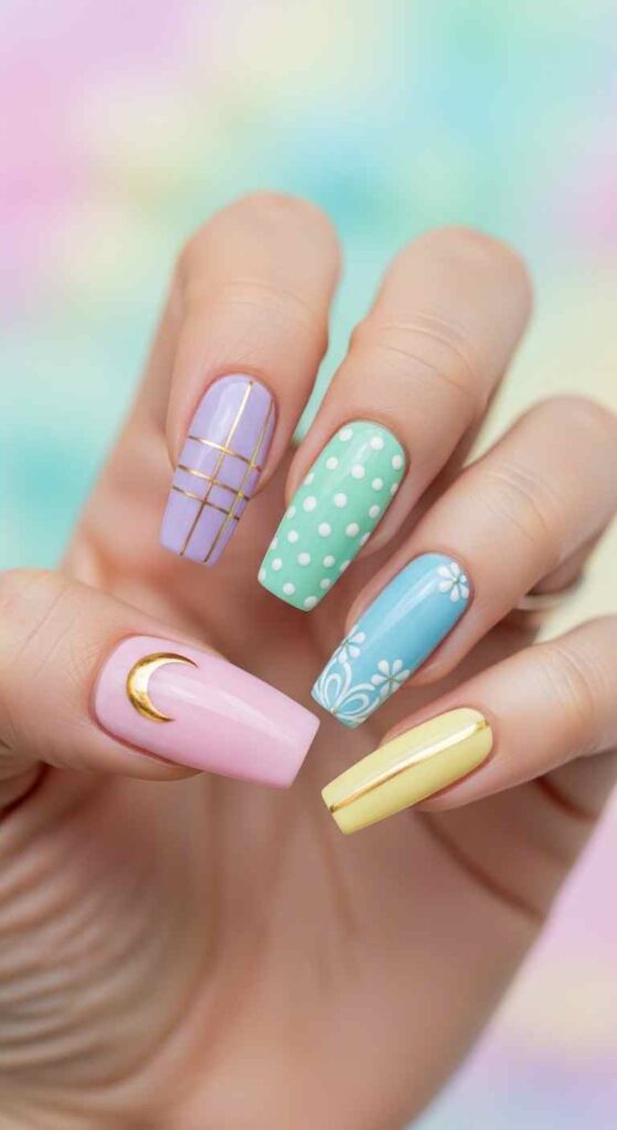 Soft pastel elegance—spring pastels on ballerina shape can feel glamorous when applied flawlessly with high-gloss finish and strategic metallic or pearl accents.