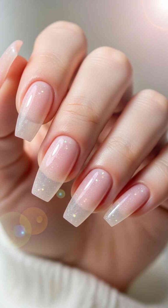 Sparkle fading from tips creates celebratory ballerina spring glamour.