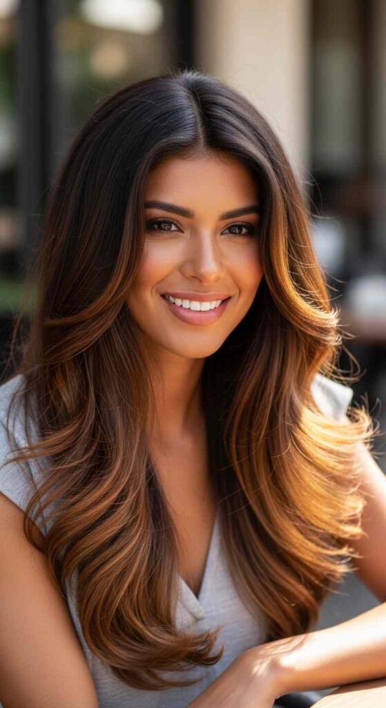 Olive complexion versatility—olive skin works beautifully with both warm and cool balayage, offering genuine color freedom across the spectrum.
