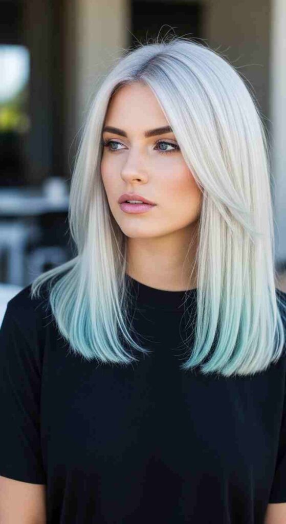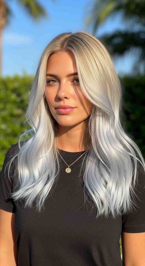 Blonde roots with icy balayage at ends creates cool summer gradient.