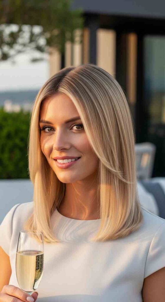 Cool champagne tones creates sophisticated summer blonde.