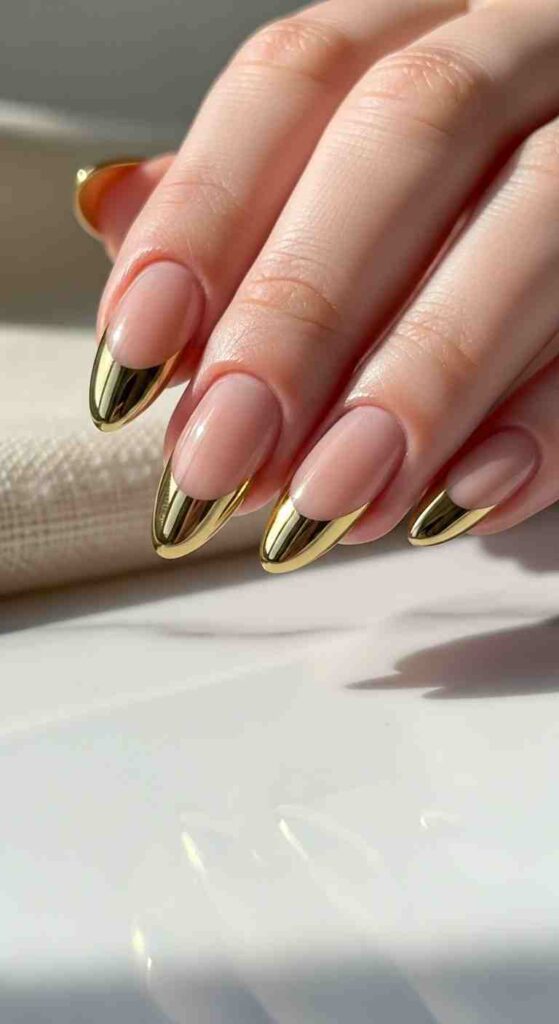 Metallic chrome tips creates modern summer glamour.