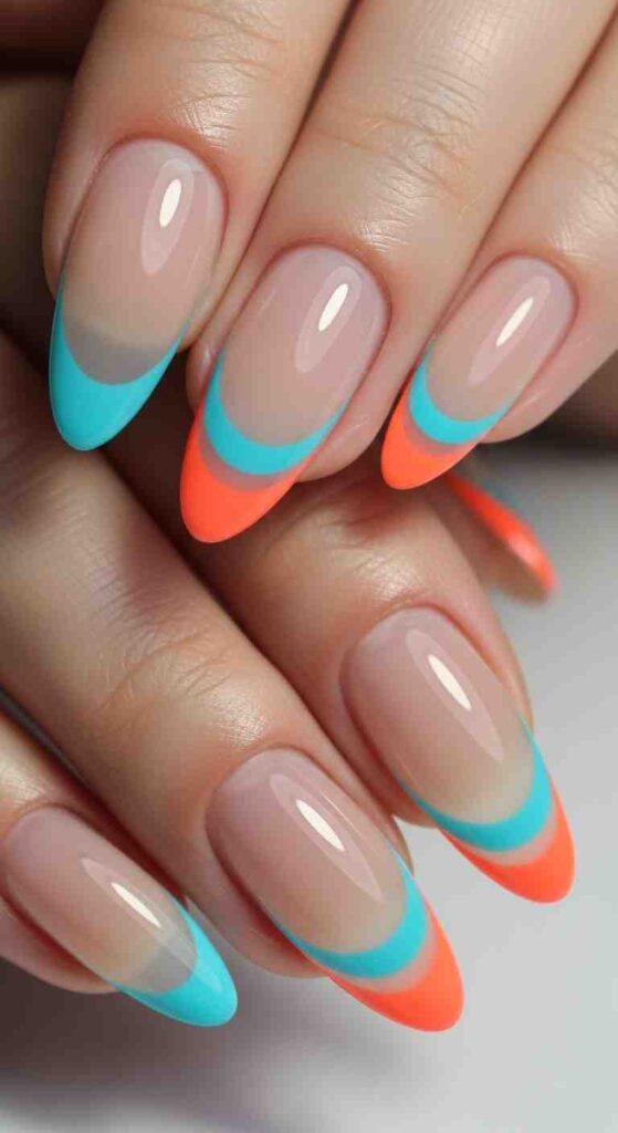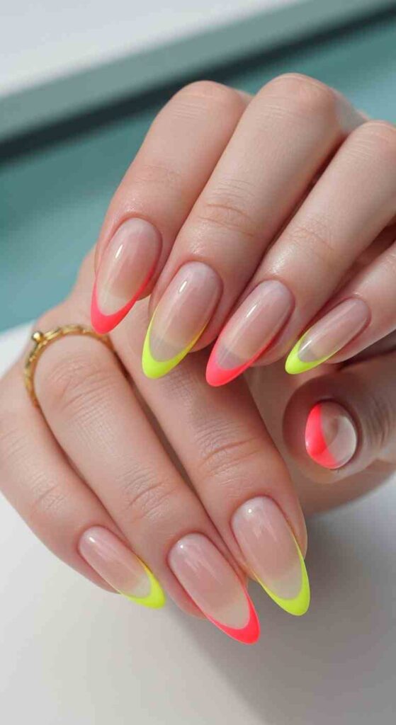 Ultra-thin neon French line creates minimal summer edge.