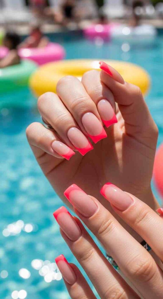 Electric neon pink tips creates bold summer statement.