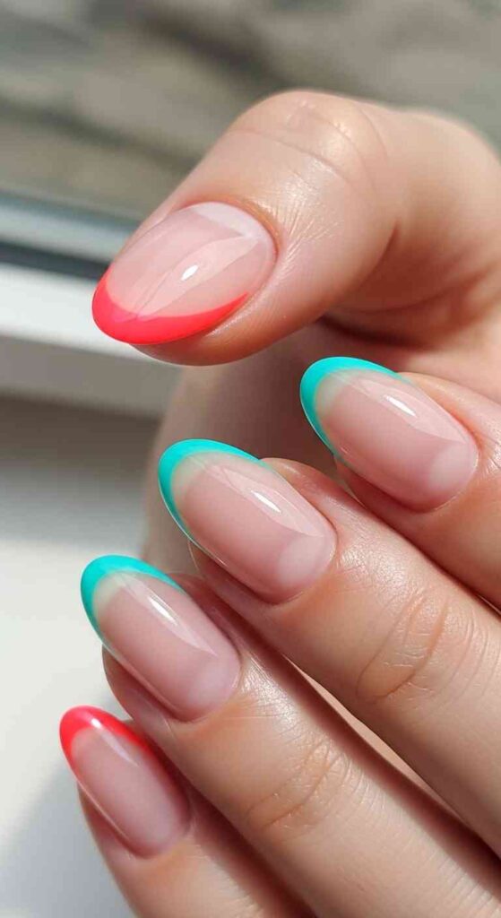 Bright color embracing—summer welcomes the brightest, most saturated French tip colors that might feel too intense other seasons.