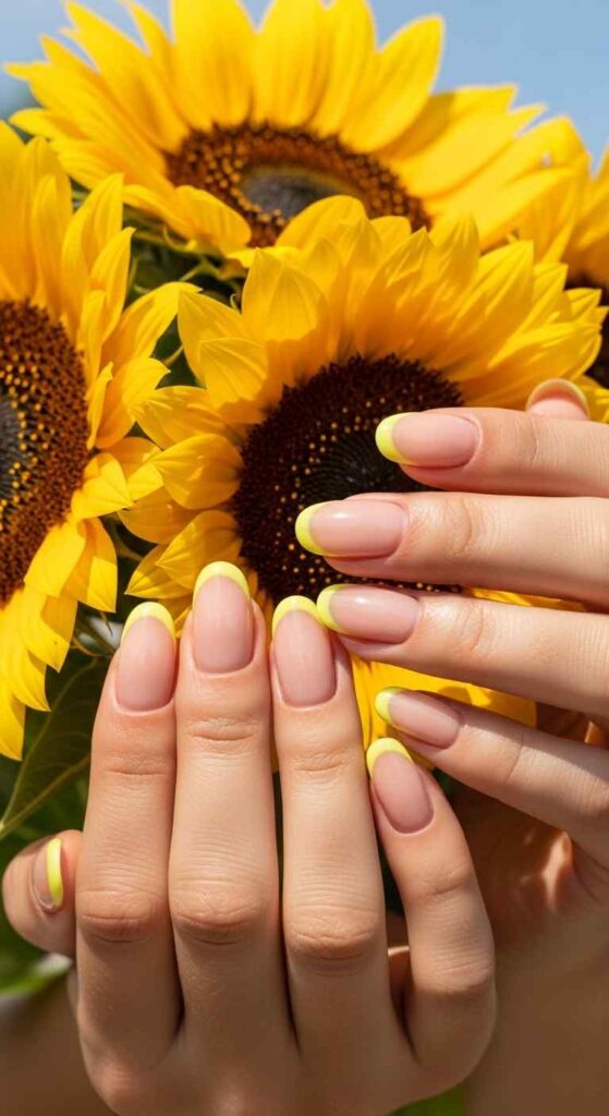 Bright yellow tips creates happy summer energy.