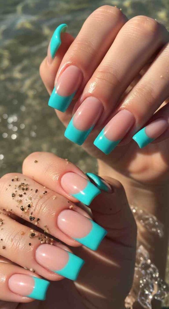Fresh aqua blue tips creates ocean summer coolness.