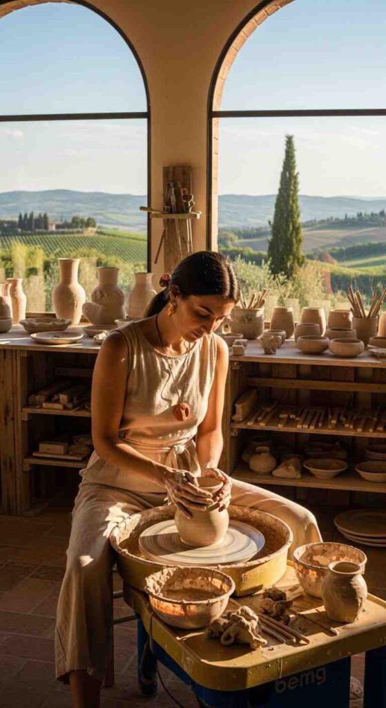 - Soft earthy tones: terracotta, olive, rust