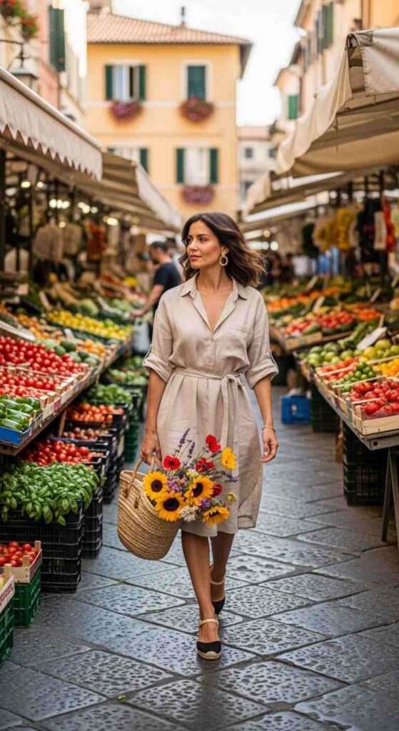 Fabric Choices Matter: Europeans prioritize natural fabrics—linen, cotton, silk—that breathe in summer heat and age beautifully. These materials drape better and feel more luxurious than synthetics.
