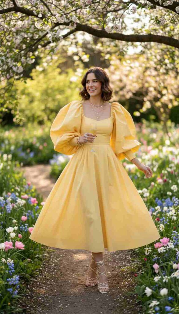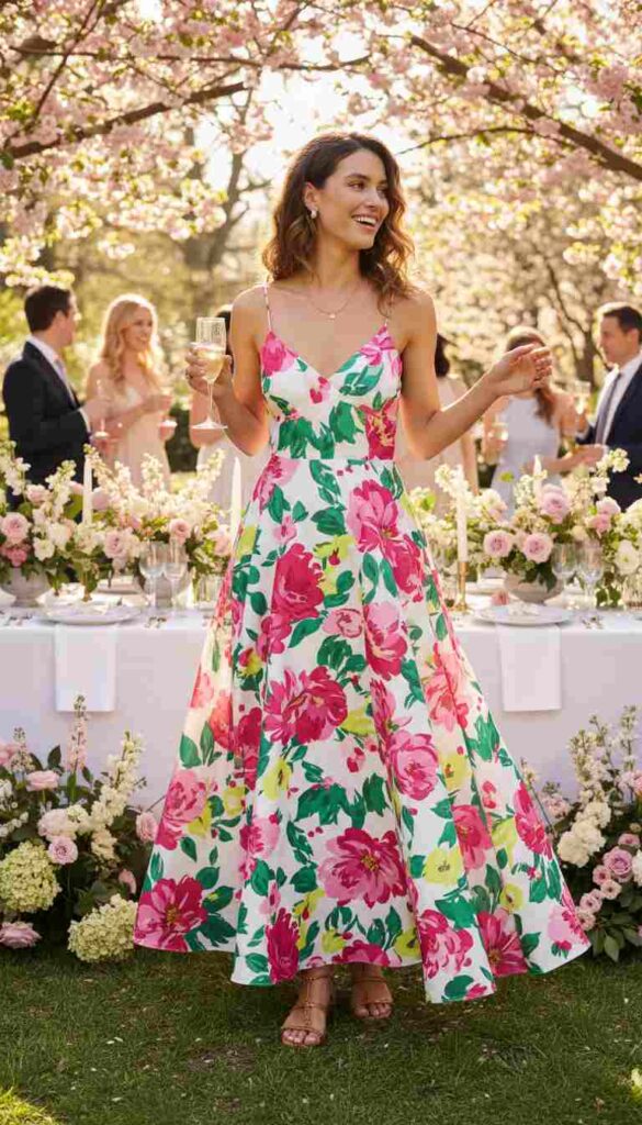 Soft pastels—blush, lavender, soft yellow—capture spring’s essential character while creating romantic, feminine aesthetics perfect for daytime garden parties and outdoor celebrations. These colors harmonize beautifully with spring’s natural palette, creating visual coherence between outfit and environment that photography captures magnificently.