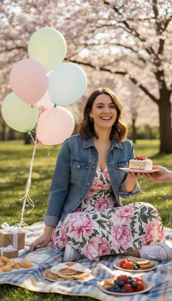 Spring birthdays offer specific advantages for casual outfit planning that other seasons don’t provide. The moderate temperatures mean comfortable layering without bulky winter coats or summer’s heat limitations. Spring’s natural beauty—blooming flowers, fresh greenery, clear light—creates spectacular photo backgrounds requiring less outfit drama since nature provides visual interest.