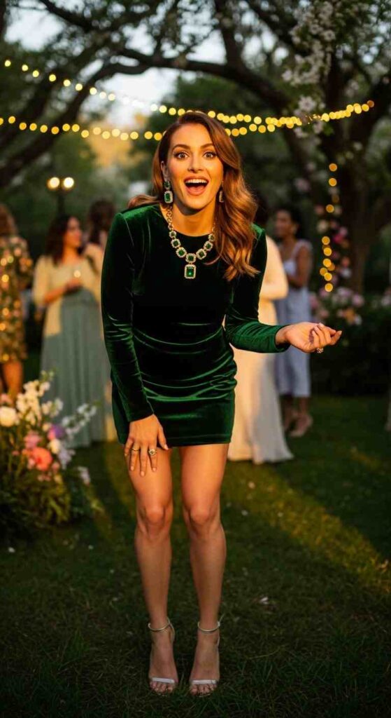 Spring velvet in jewel tone creates unexpected textured glam.