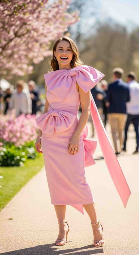 Dramatic bow accent creates playful feminine glam statement.