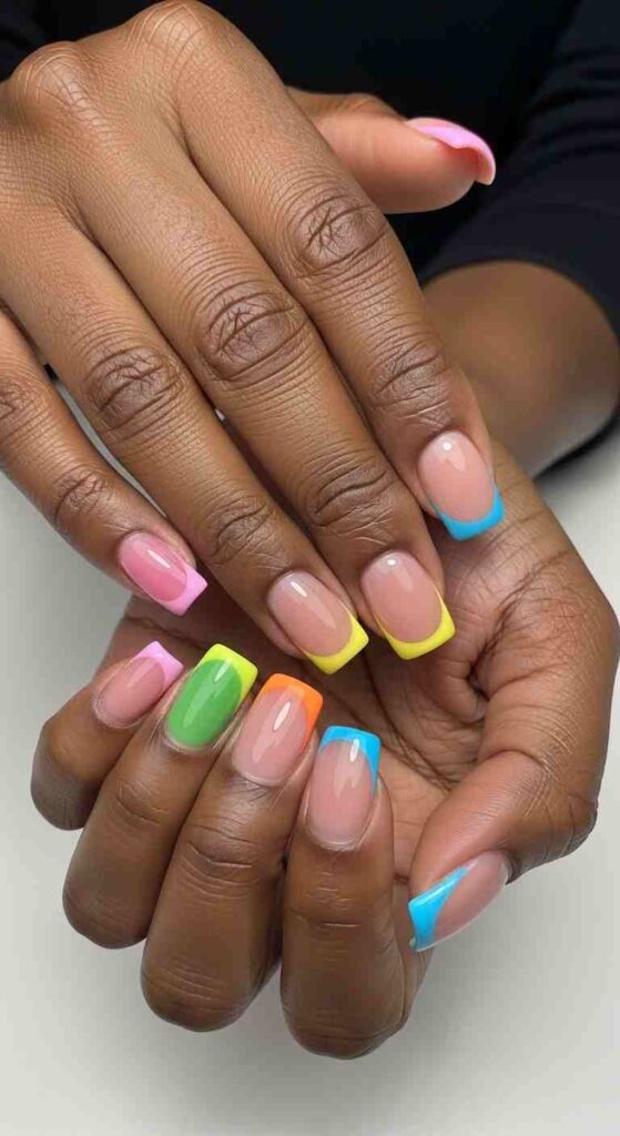 Different colored tips creates playful spring rainbow on Black skin.