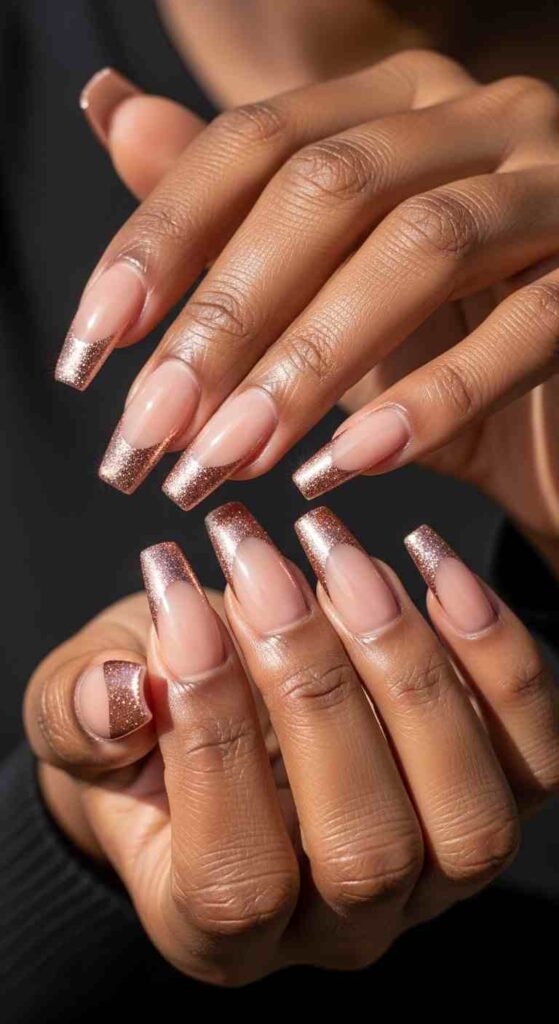 Rose gold metallic tips creates spring shimmer on Black skin.