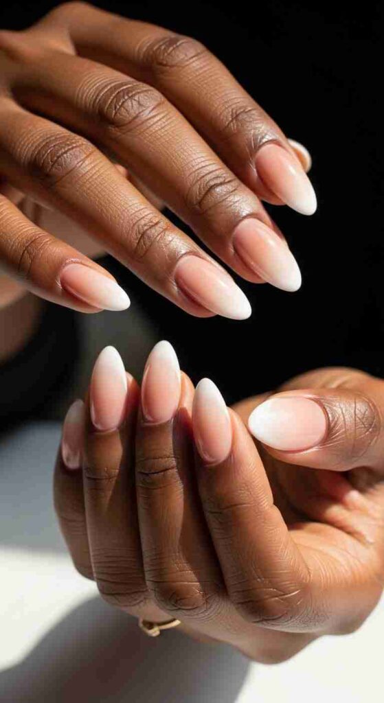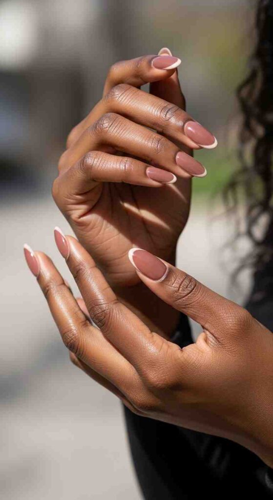 Deep nudes complement very dark skin—rich chocolate browns, deep taupes, and warm deep beiges all work as “nude” bases for the darkest skin tones. These shades create the seamless, natural-nail-appearance that defines classic French while actually matching your skin rather than creating obvious mismatch.