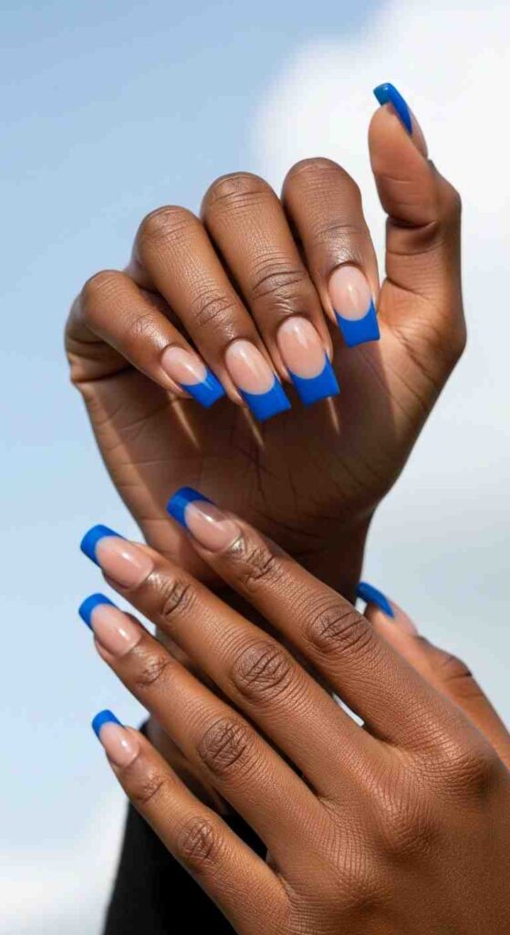 Vivid blue tips creates cool spring statement on Black skin.