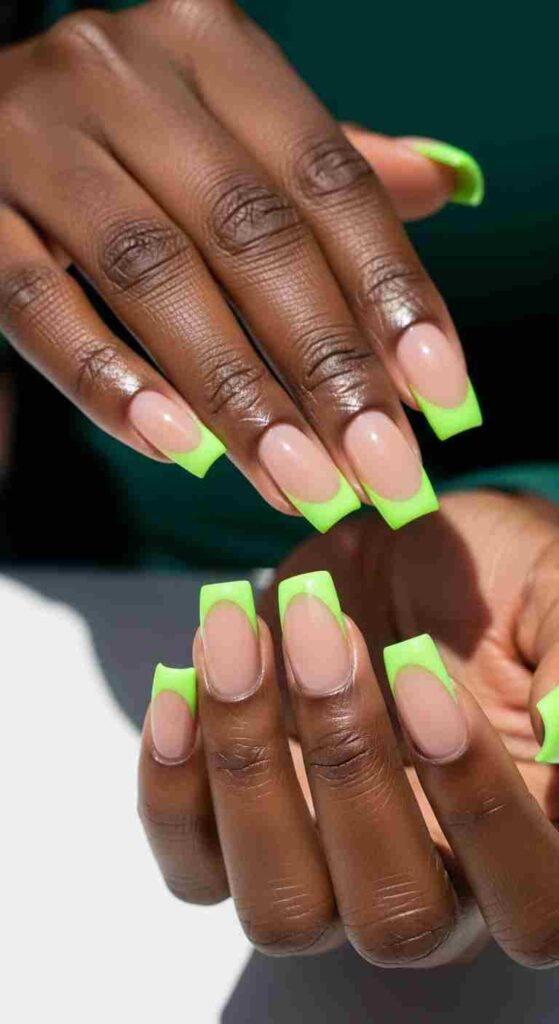 Bright lime tips creates vibrant spring energy on melanin.