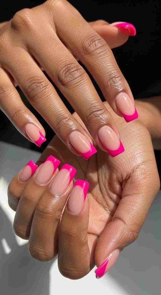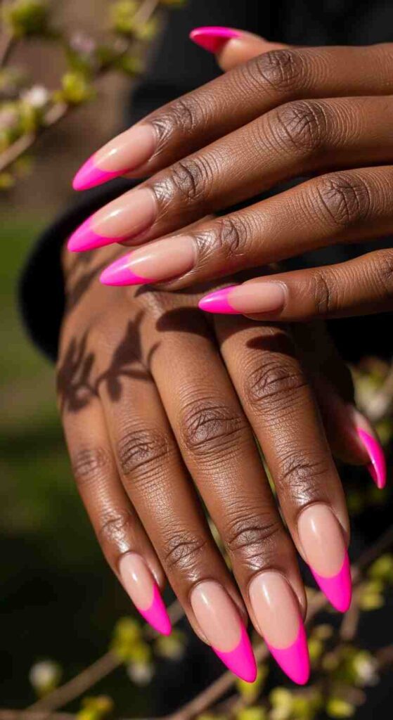 Electric neon pink tips creates bold spring statement on Black skin.