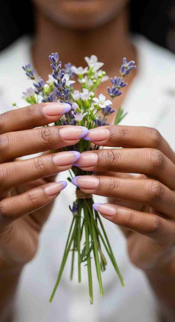 Soft lavender tips creates cool spring contrast on melanin.
