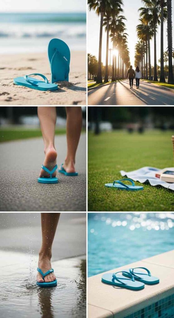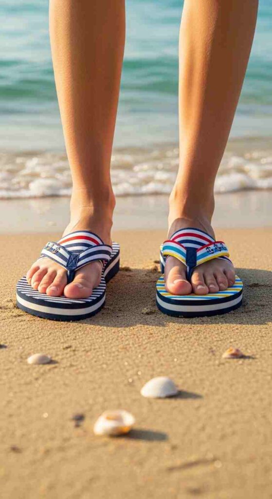 Proportion awareness—flip-flops’ flatness affects outfit proportions; considering this prevents unflattering silhouettes.