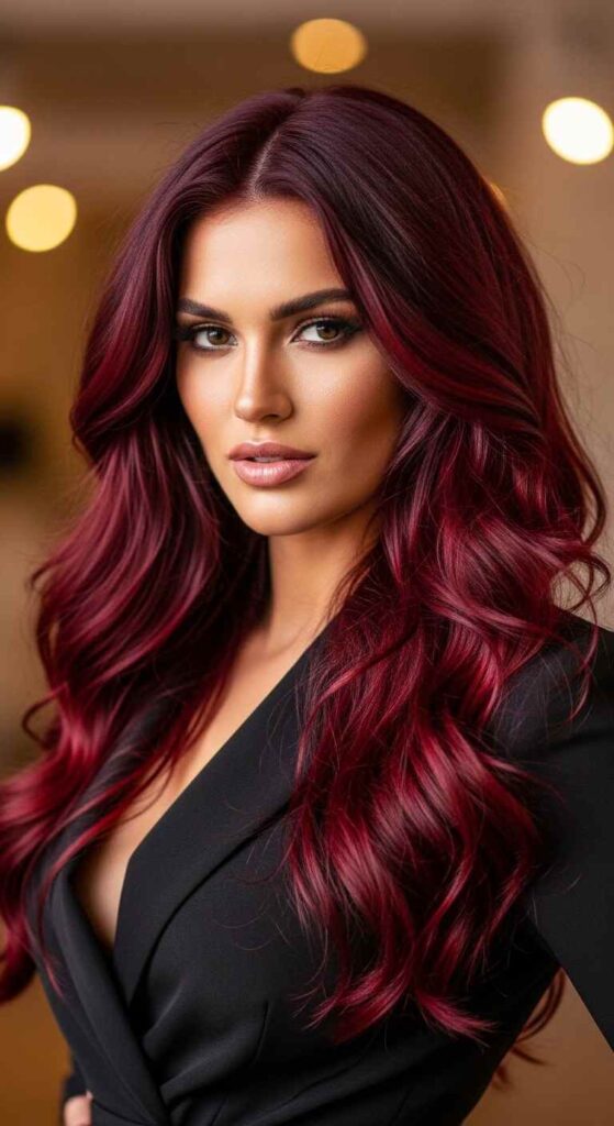 Dark cherry-red tones creates vibrant dark hair summer statement.