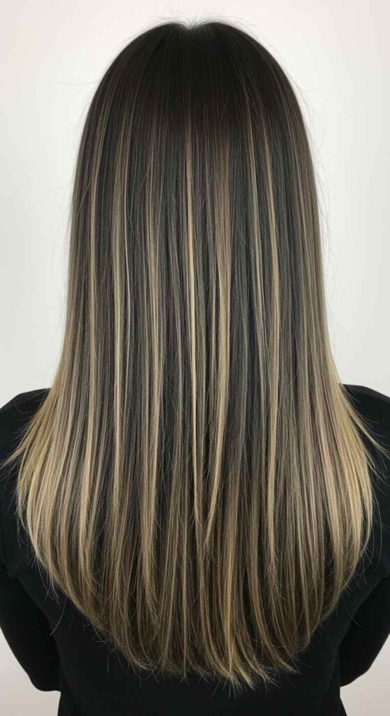 Babylights for subtlety—ultra-fine highlights create barely-there dimension perfect for conservative dark hair lightening.